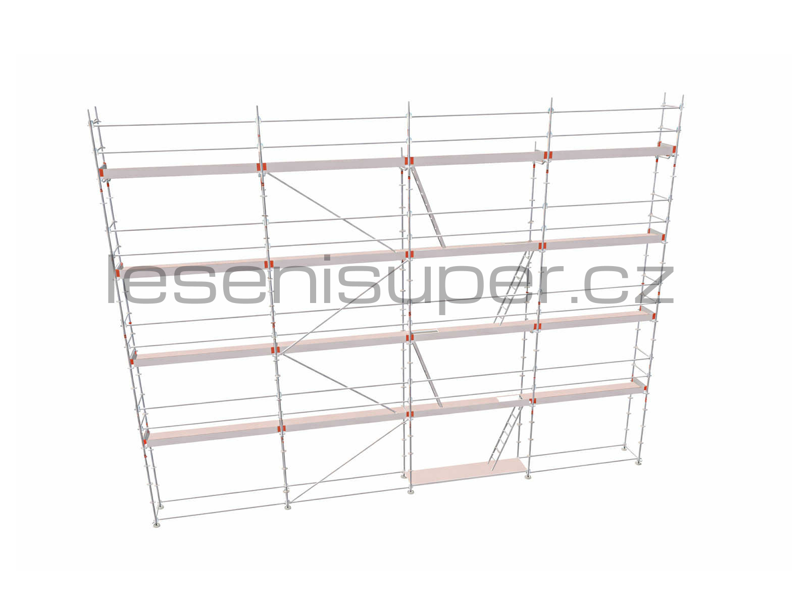 Rozměr pracovní plochy délka 12,28 m x výška 10,4 m. Celá sada váží 1248 kg